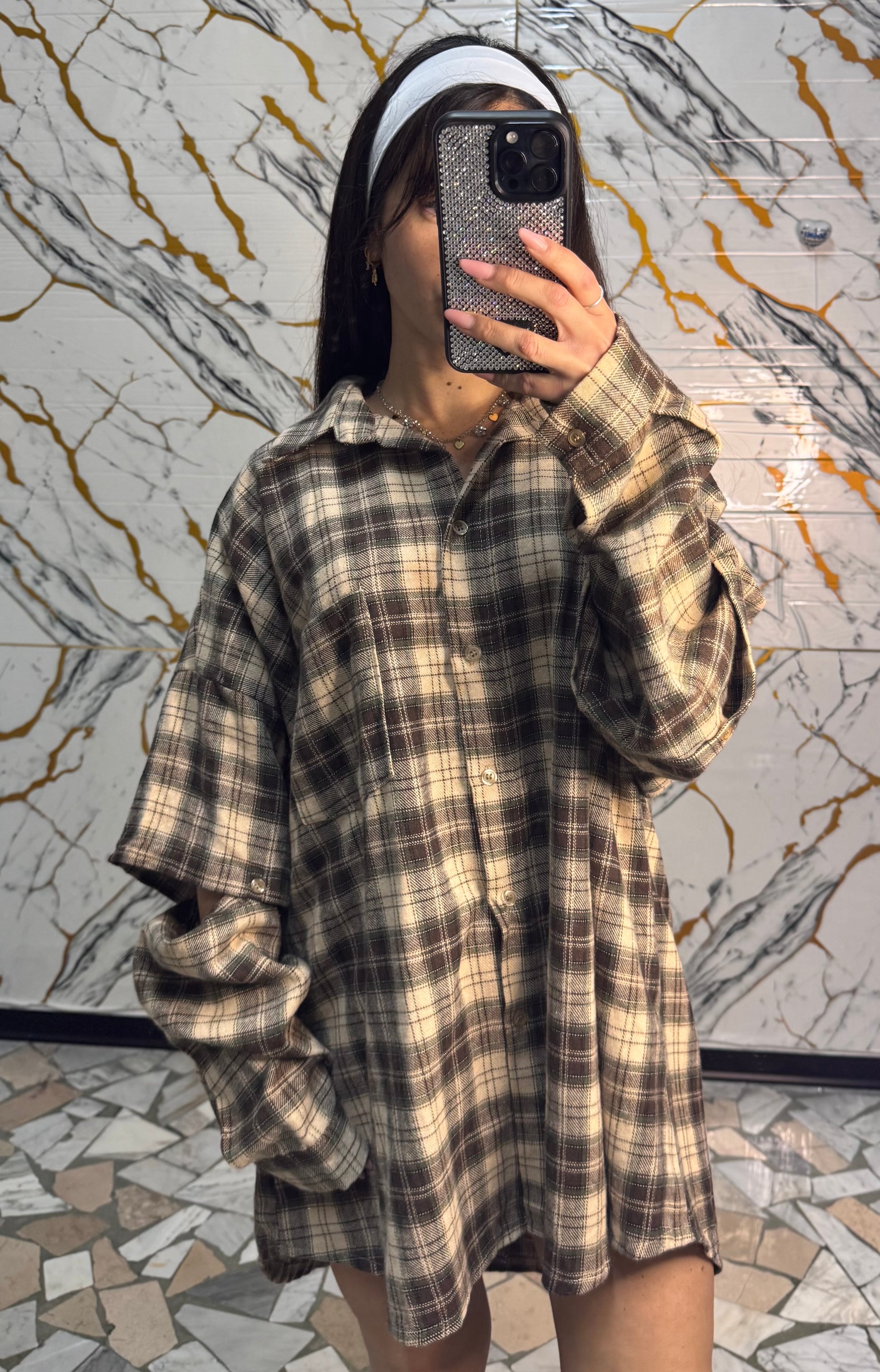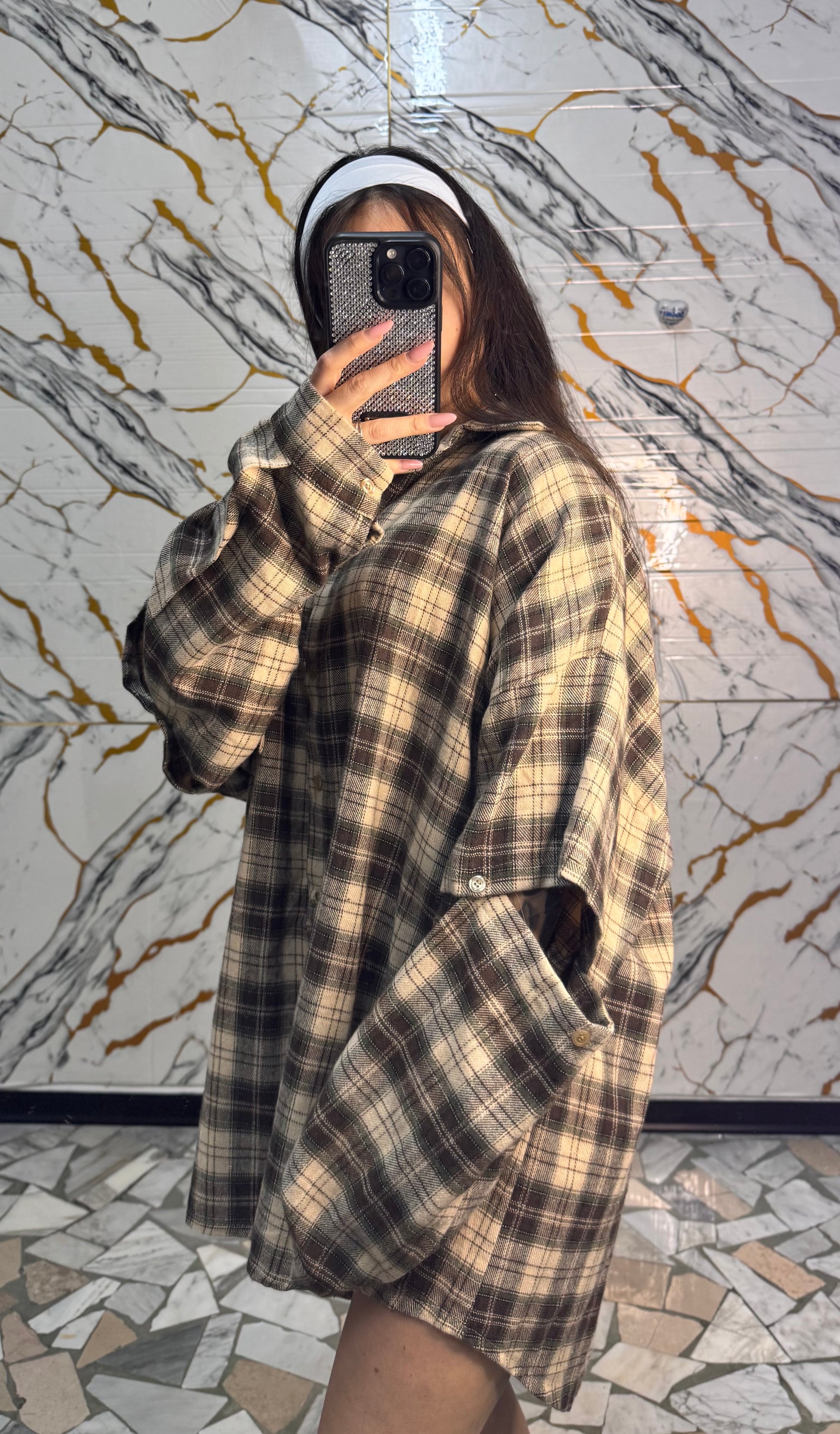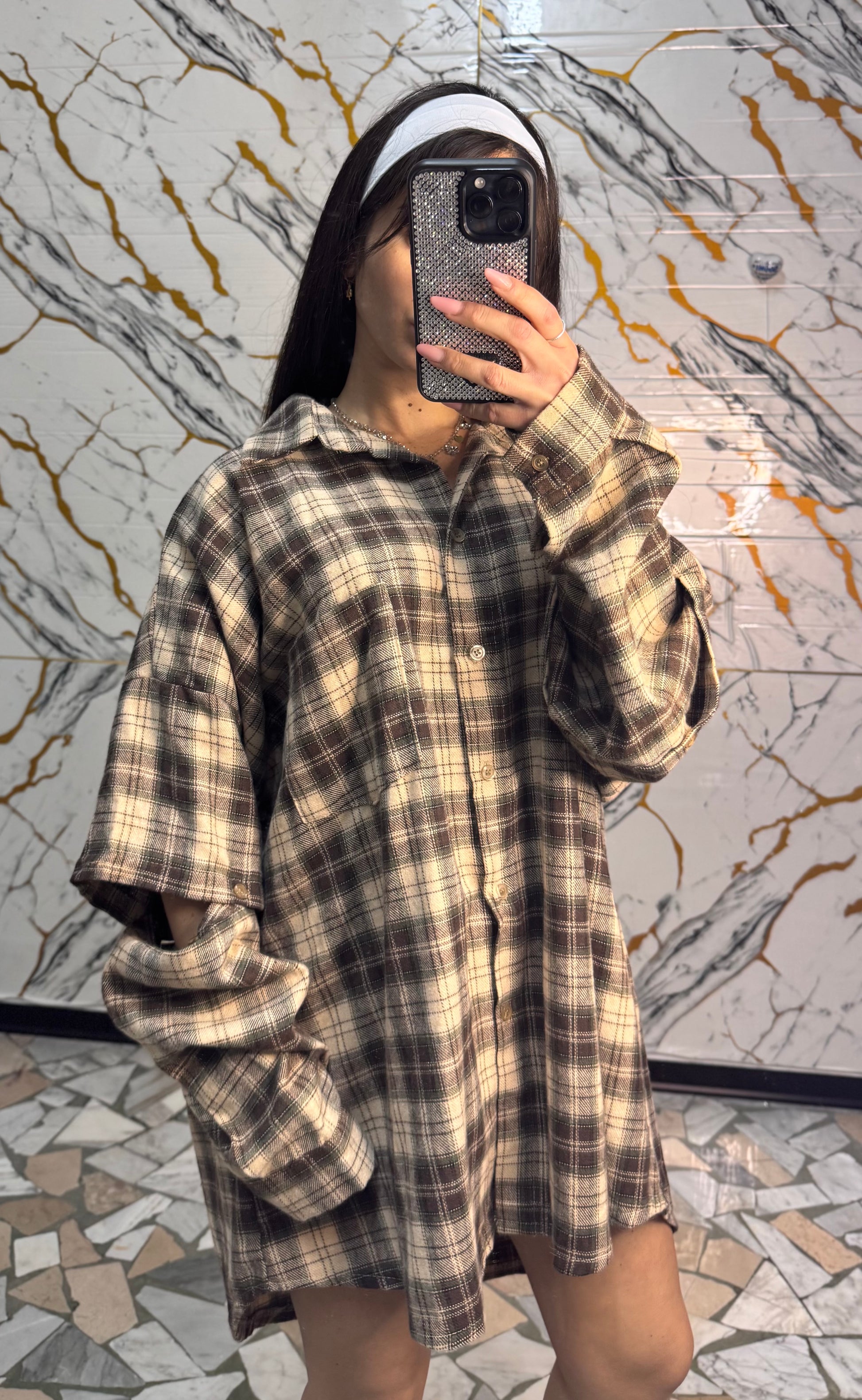 Curvy camicia Carres beige