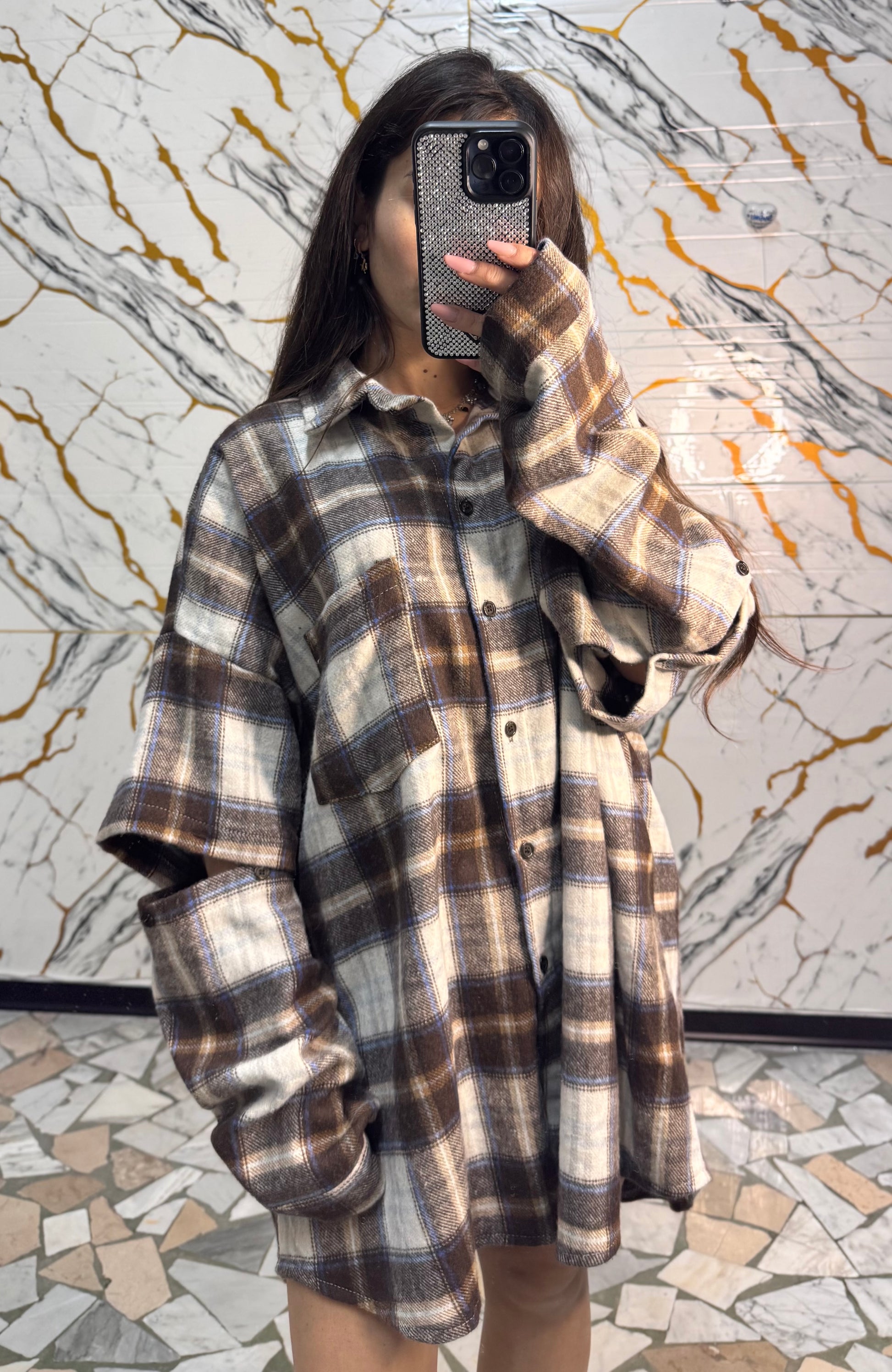 Curvy Camicia Carres marrone