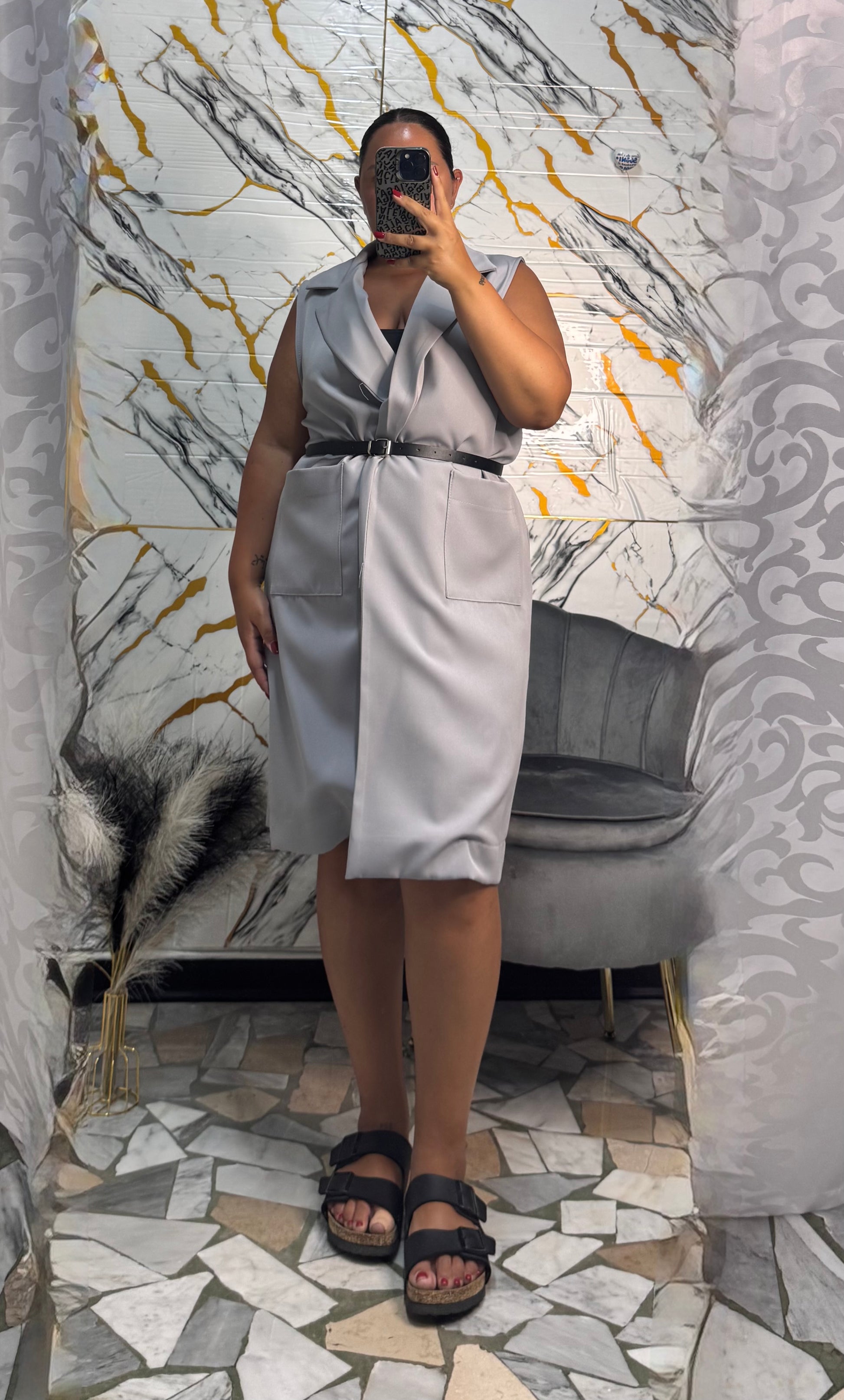Questo gilet curvy è un capo moderno e raffinato, ideale per creare look sempre diversi. La nostra modella lo indossa con una cintura in vita, in versione vestitino elegante, ma può essere portato anche aperto sopra una t-shirt o una camicia per un mood più casual e quotidiano.
