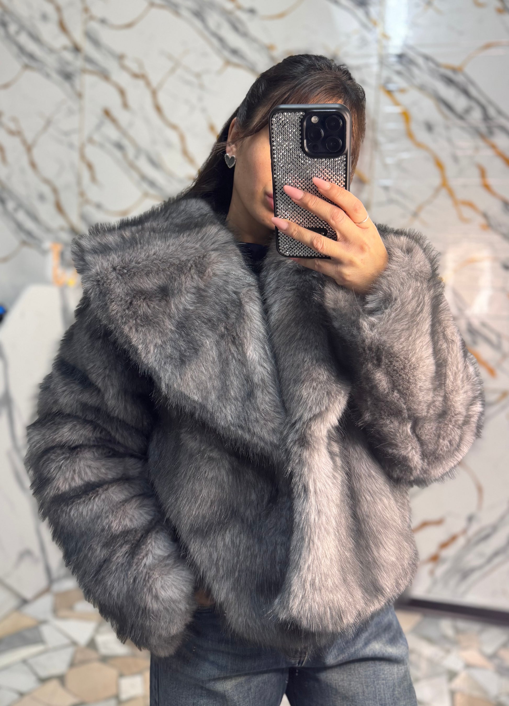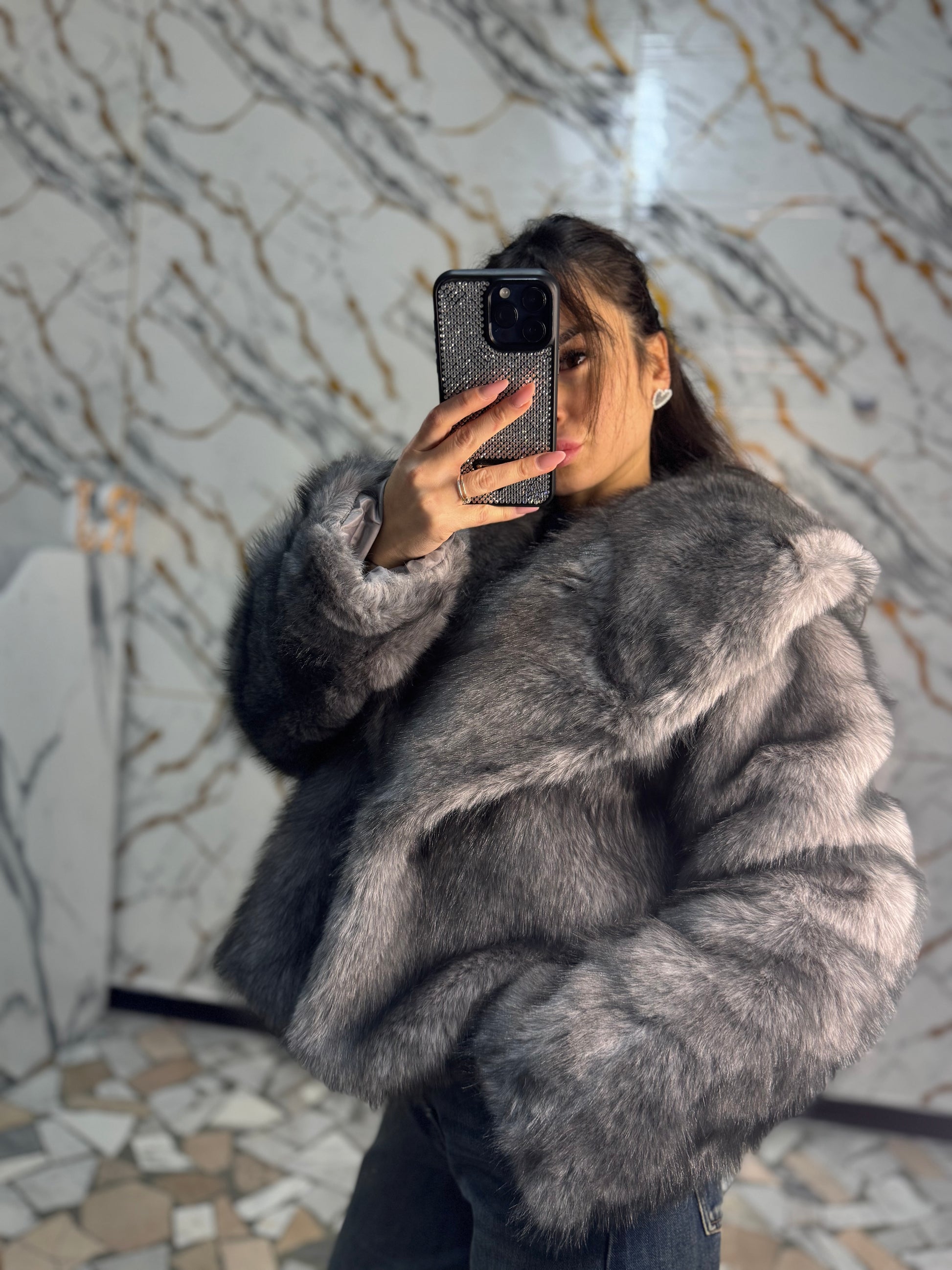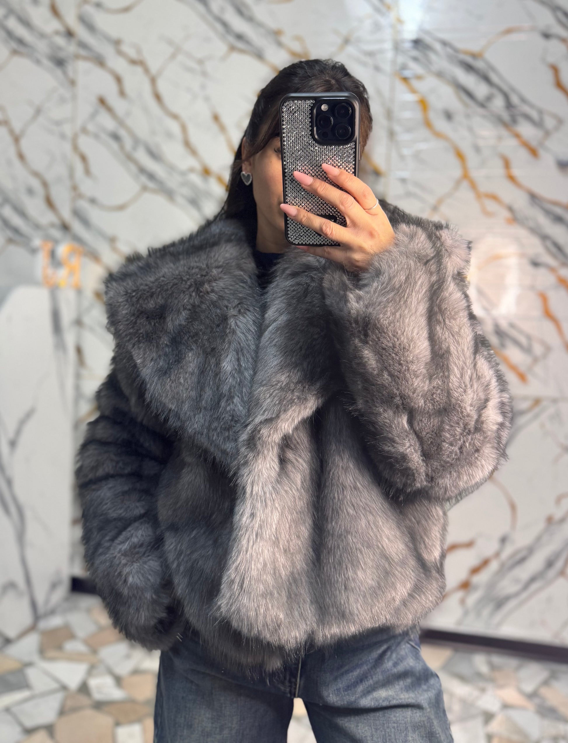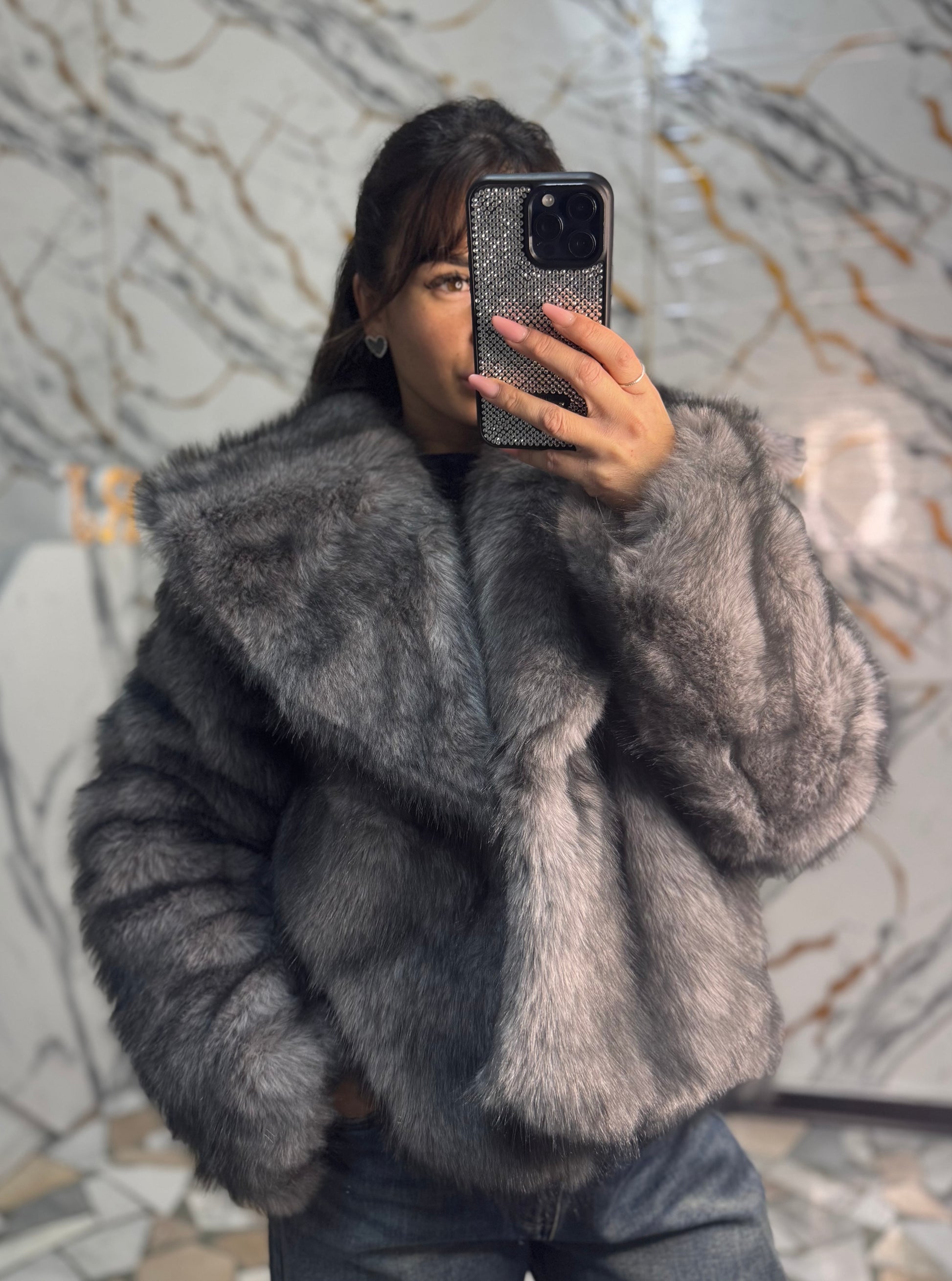 Eco pelliccia grigia