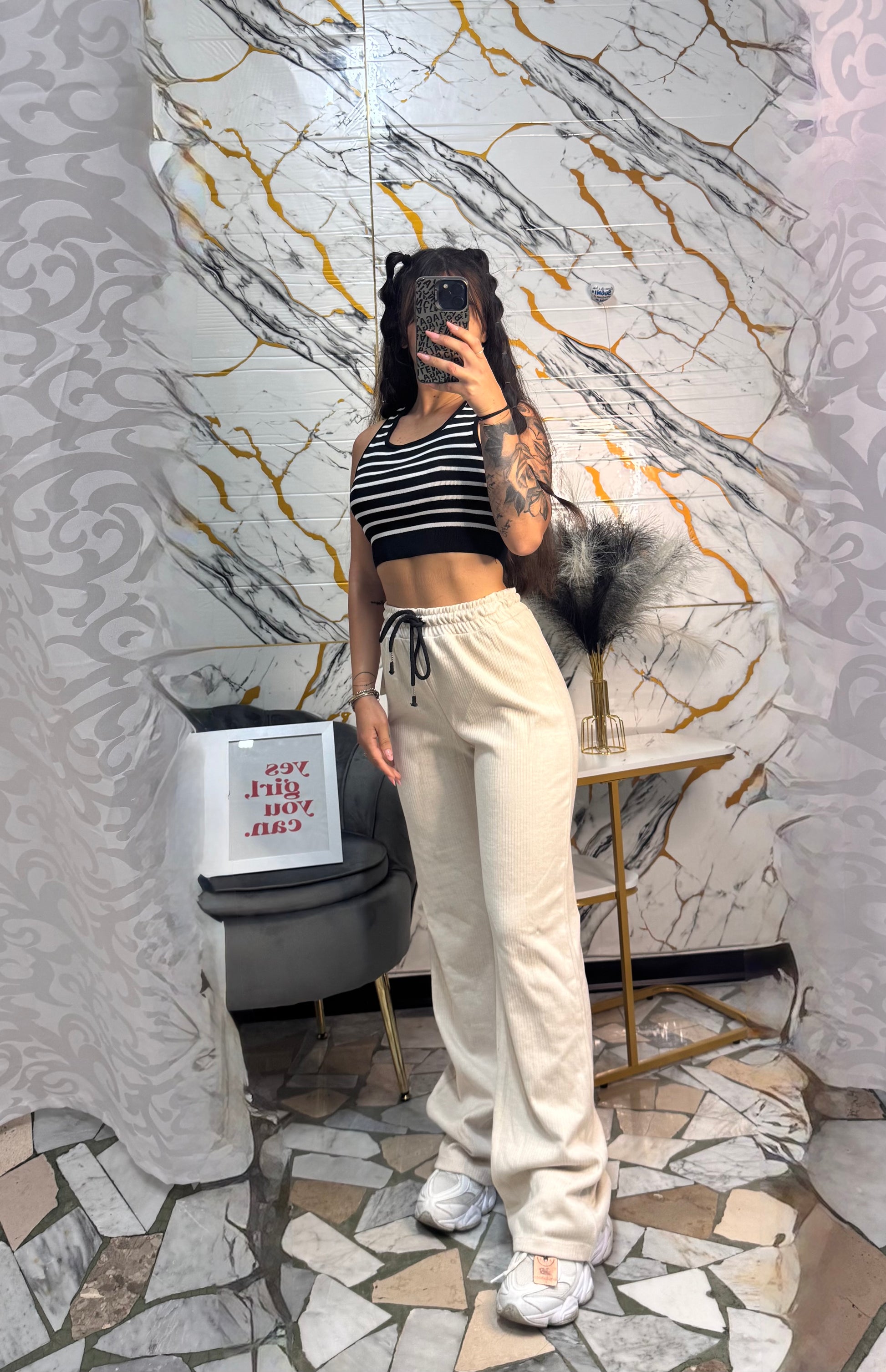 Disponibili in due varianti colore – beige panna e nero classico – sono il capo ideale da indossare nel tempo libero, a casa o per un’uscita informale. Facili da abbinare a top sportivi, felpe oversize o camicie morbide, diventano subito un must-have del guardaroba quotidiano.